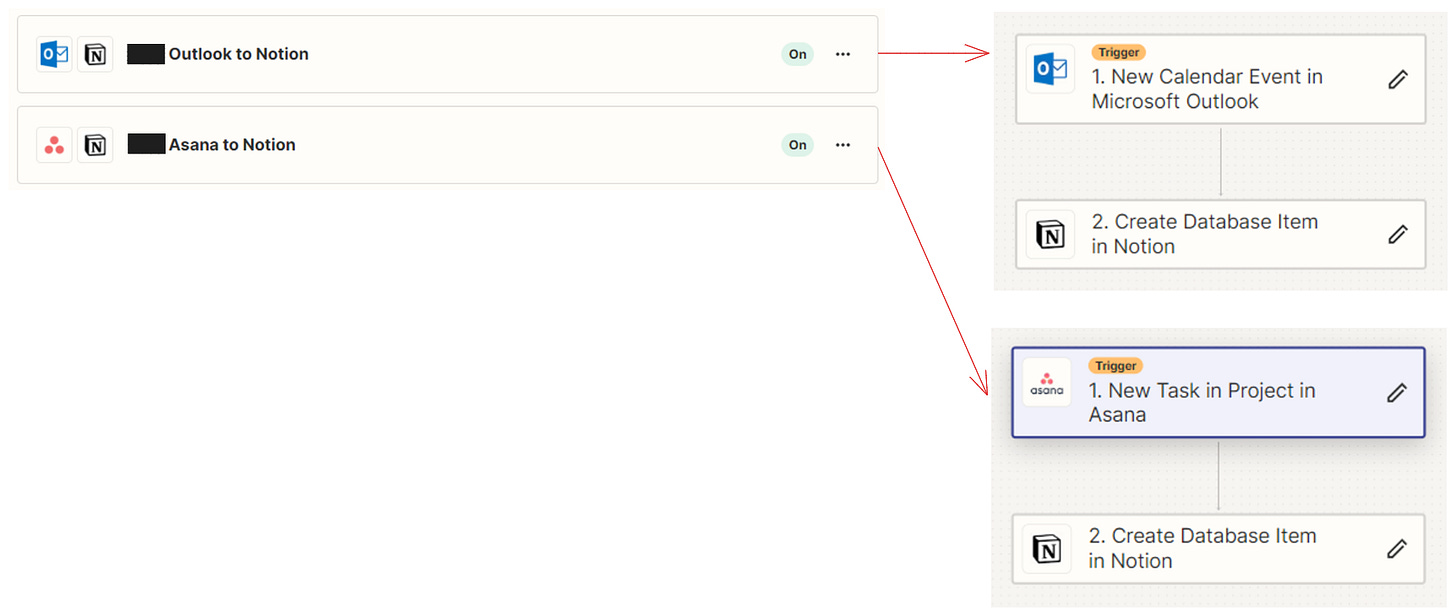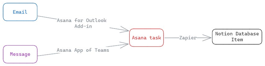 For my workflows, I seamlessly connect Outlook and Teams with Notion through Asana and Zapier, leveraging the following capabilities: